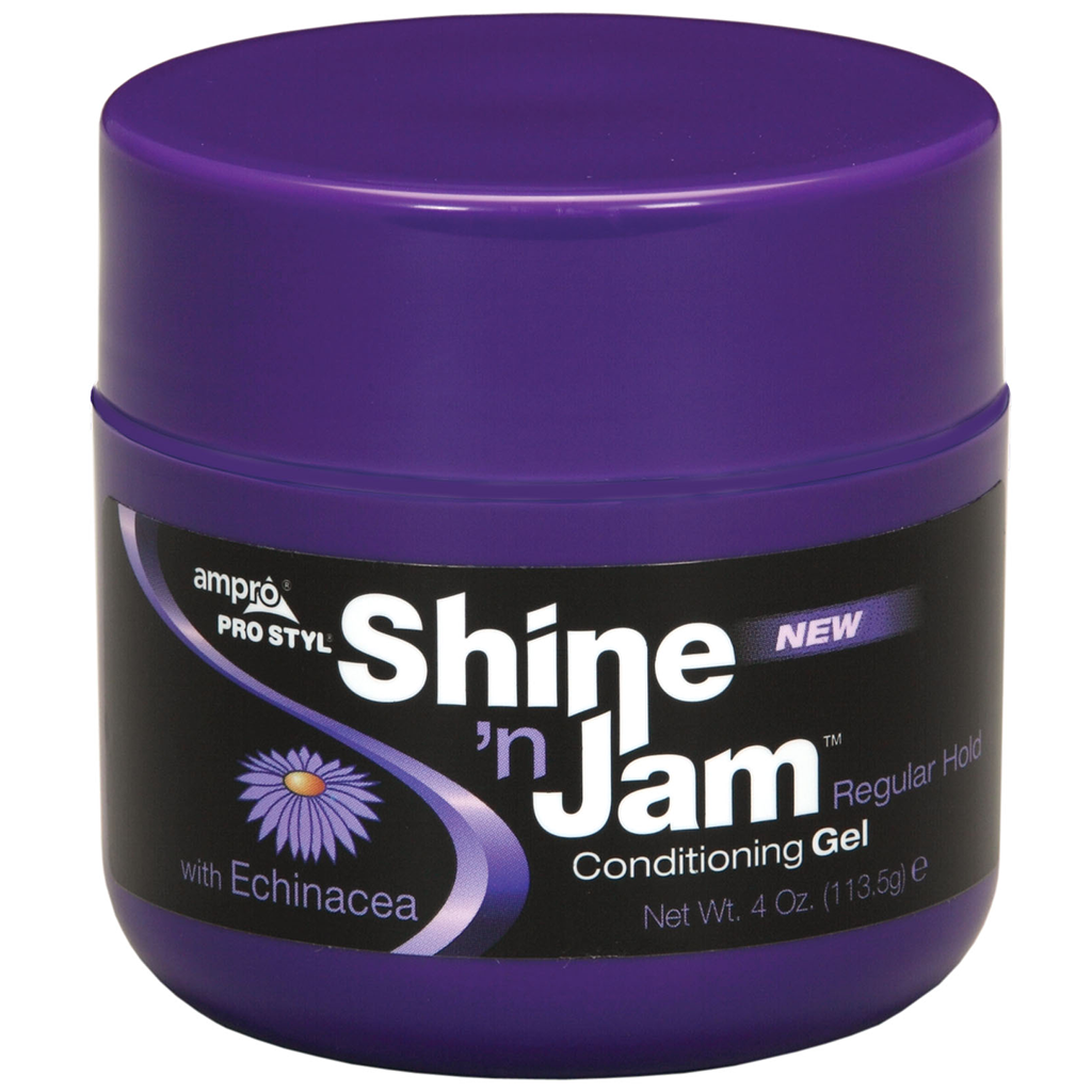 Shine ’n Jam® Regular Hold - the gel you have been waiting for: free of alcohol, parabens, wax, petrolatum and silicones. This moisturizing, non-flaking gel has a firm, non-greasy hold. Enhanced with Echinacea to help promote hair growth. Great for soft waves, braids, locks, twists or any style your heart desires!
